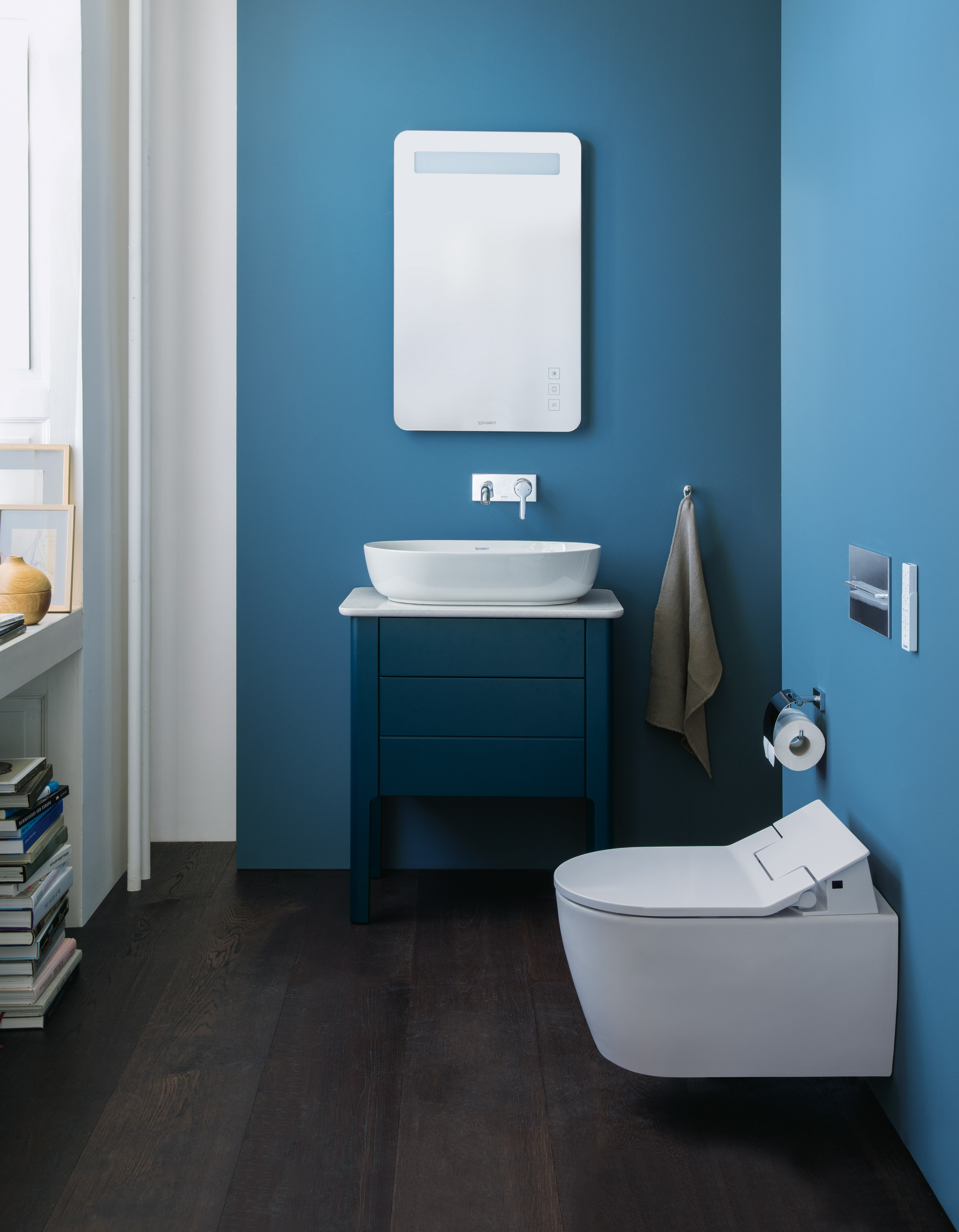 Kleur werkt! De nieuwe kleurtrends in de mode- en interieurwereld zijn „warm & grey“, „black is back“, „black & white“, „puur hout“, „Ton sur Ton“, evenals blauwe tinten in verschillende nuances van licht tot het krachtige nachtblauw. Optimaal worden Zwart Wit, hout, maar ook blauw met verschillende bruine en warme grijstinten gemengd om volledig tot hun recht te komen. Duravit zet daarbij in op afgestemde kleurwerelden en oppervlakken die overtuigen dankzij een uitgebalanceerde mix. Verschillende fineren, decors, matte tinten, lakoppervlakken, nieuw keramiek, keramiekglazuur, metaaloppervlakken en nieuwe materialen voor baden zorgen in hun combinatie voor spannende akkoorden en een nooit eerde geziene individualisatie.
